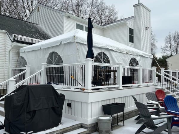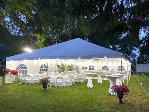 We have a large stock of assorted size Frame Tents for events from 10 to 250 guests per tent. Our clean white Frame Tents provide a fantastic safe space to have a party, and their strong frames mean they'll be able to withstand much more challenging weather than canopy or pole tents. Is your event in going to run into the night or in colder months, we have lights and heaters if needed to meet those challenges. We are here for YOU!
