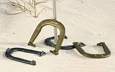 A traditional classic yard game. The horseshoe set includes horseshoes and stakes. Offical set up distances are: