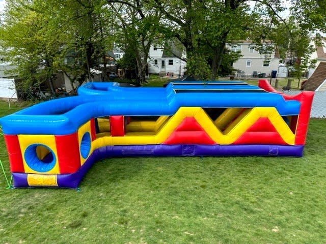 The 34' Duel Lane Obstacle Course Competition is 34' ft of fun filled obstacles riders work their way through to get to the end. Vertical obstacles, Horizontal obstacles, climb, slide and dash to the end. Riders will enjoy the competition time and time again.