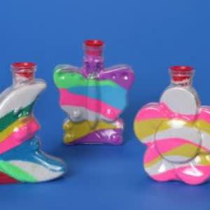 Includes 24 bottles of various styles & 6 colors of sand with easy fill squeeze bottles