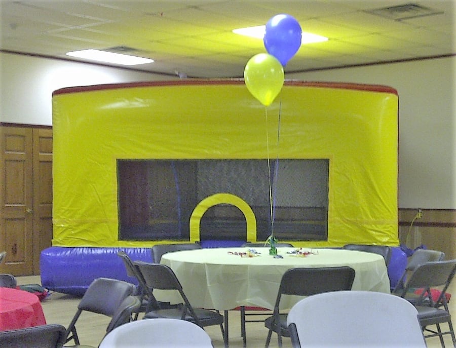 This bounce will fit indoors where the height of the ceiling is at leat 8' High.