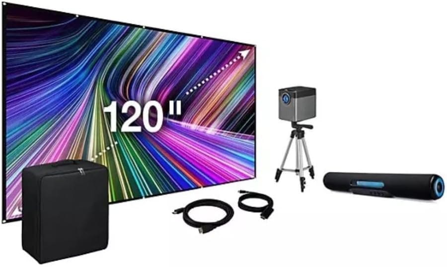 Projector, Tripod, and Bluetooth Soundbar Bundle