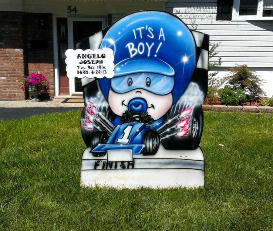 We proudly deliver our Racecar Baby Announcement to customers in Monmouth, Ocean, Mercer, and Middlesex Counties. Whether you're located in these areas or want to surprise someone special with this delightful announcement, we've got you covered!