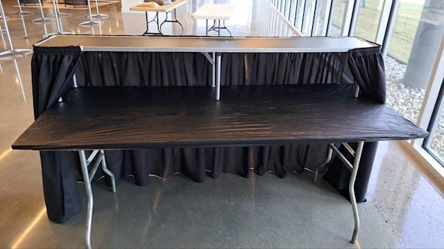 The sleek black design of our 6' Bar adds a touch of sophistication to any setting. Its clean lines and modern aesthetic make it a standout piece that will impress your guests. Whether you're serving cocktails, appetizers, or desserts, this bar will elevate the overall look and feel of your event.