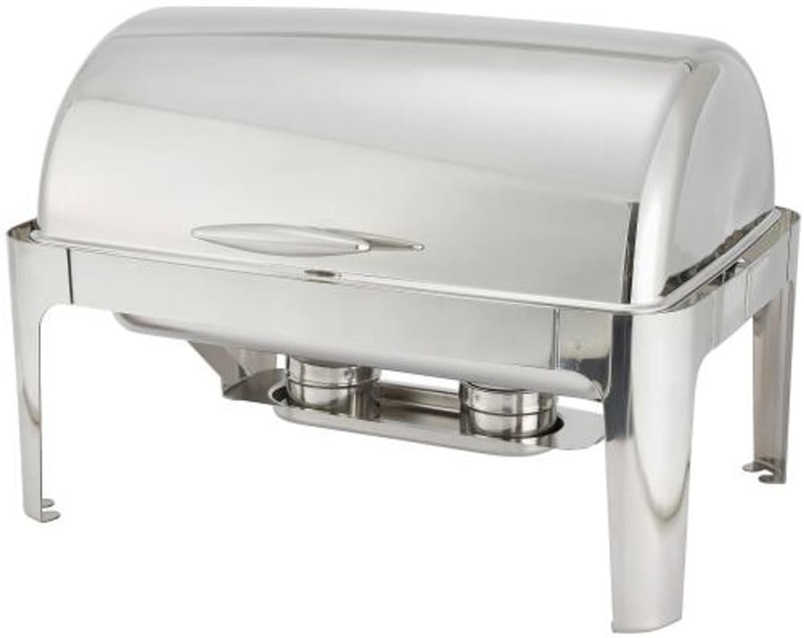 The Winco chafer features adjustable roll-top covers with full 180° opening and 90° intermediate option. This model comes in a rectangular shape and has a capacity of 8 quarts. This chafer's convenient roll-top cover makes serving food a breeze since your staff or your guests can easily slide the lid up whenever they want to serve food and then slide it back down to keep airborne contaminants out.