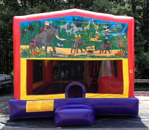 Combo Bounce Houses are packed with fun. Riders enjoy an 18’ x 9’9” jumping area, a basketball hoop for soft balls to show off your shooting skills, stairs to climb then riders enjoy the side back to the jumping zone. Hours of fun for all participants.