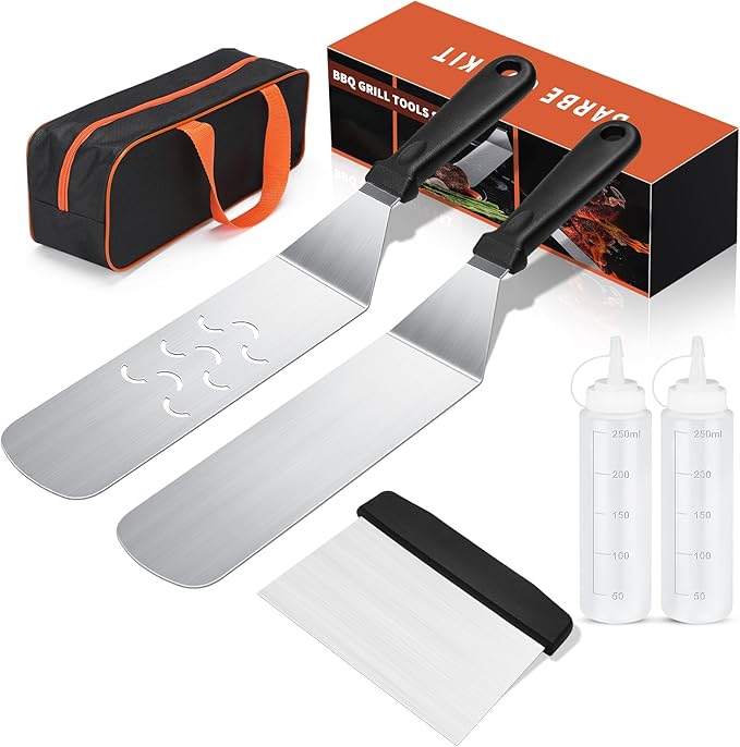 • 2 Long Blackstone Spatulas: Ideal for managing larger portions and keeping your hands safe from the heat.