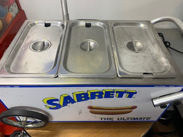 Fun for everyone. This tabletop hot dog cart can heat up to 90 hot dogs or 60 dogs and 2 side dishes, depending on the pan set up. Please ask