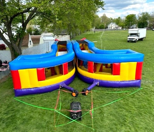 The 34' Duel Lane Obstacle Course Competition is 34' ft of fun filled obstacles riders work their way through to get to the end. Vertical obstacles, Horizontal obstacles, climb, slide and dash to the end. Riders will enjoy the competition time and time again.