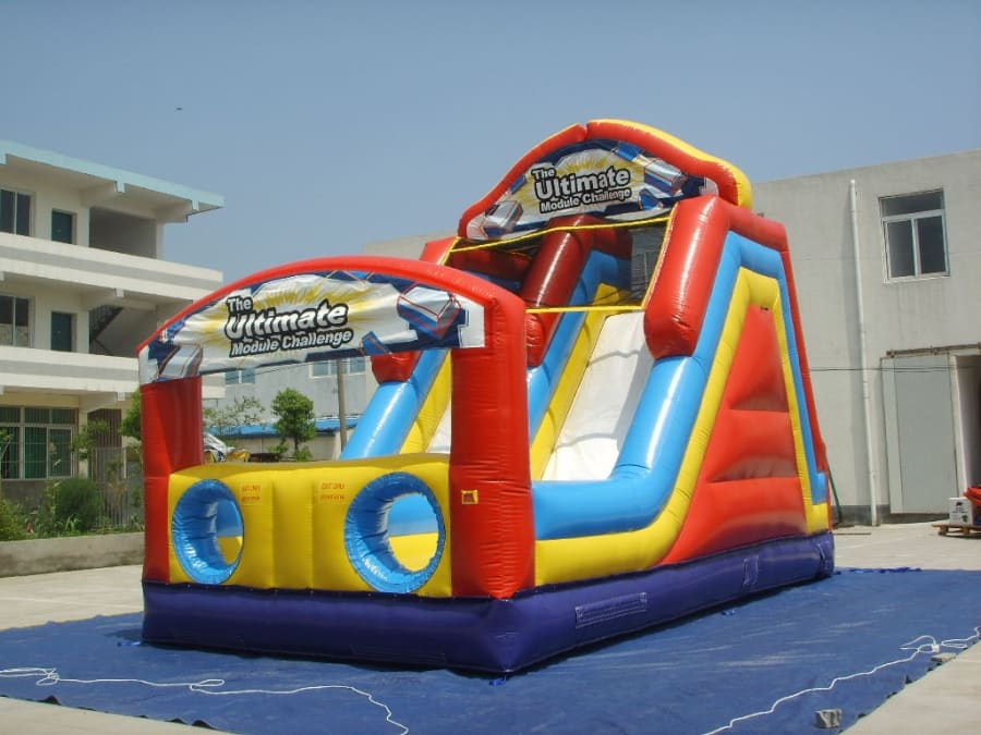 The Duel Lane Rock Climb with Slide Challenge brings everything you love in an inflatable attraction together in one brilliant design! This piece includes a double lane slide with climb challenge steps with tunnel exits. The Rock Climb prides a fun challange to get to the exciting slide.